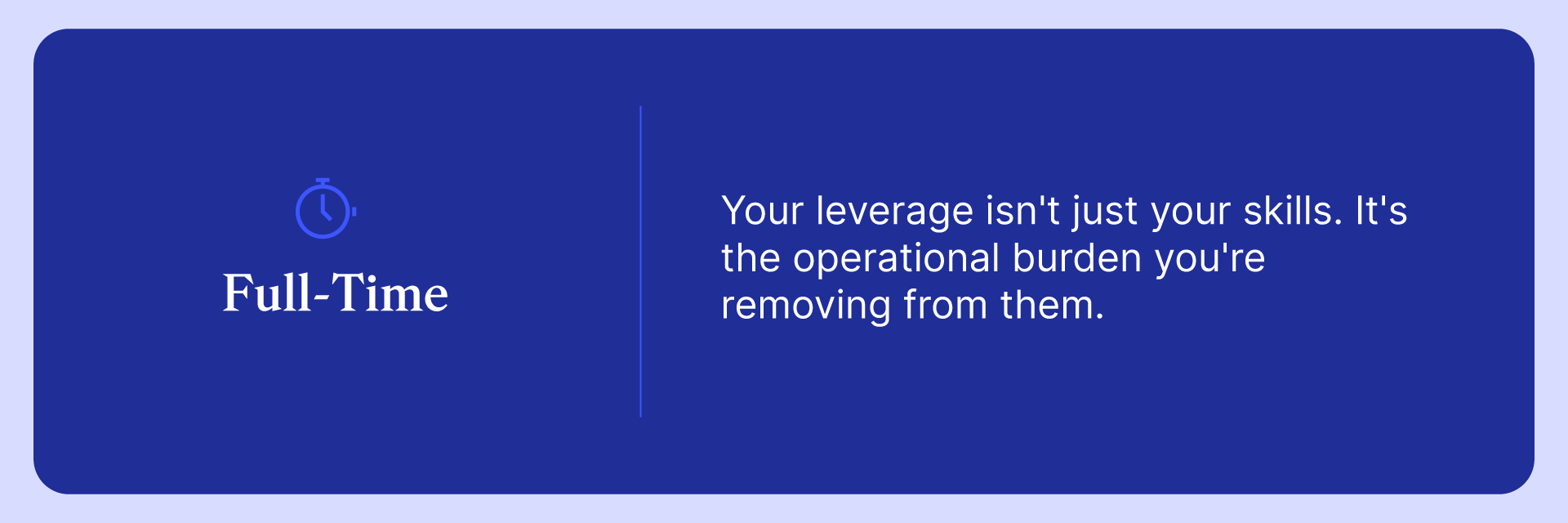 When I negotiated my last full-time role, I knew two things clearly. One: the position was primarily brand design with motion as a nice-to-have. Two: I could do both, produce all the video assets, and organize and close the work without significant oversight. That capacity reduces their headcount, reduces their vendor spend, and matures their brand faster than someone who can only do one thing. That's the leverage; not just your craft, but the operational burden you're removing from them.